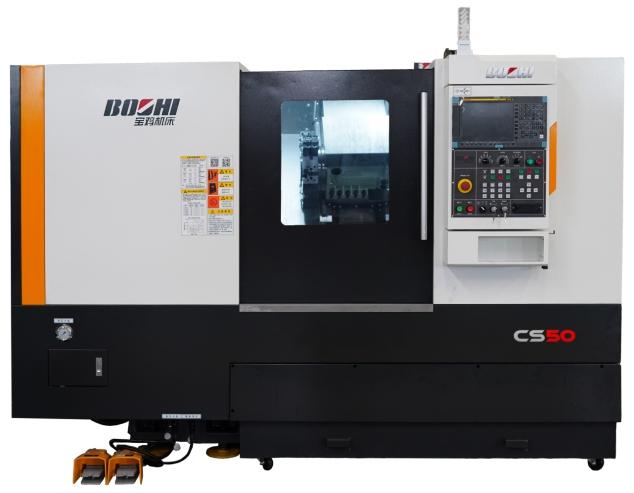 CS50差(chà)速器數控車床是一款(kuǎn)針對汽車行業差速器加工的專用數控機床,配備B軸功能(néng),可以(yǐ)三軸聯動,實現專用鵝頸刀具自動進刀,進行差速器殼內球麵、內階麵的加工。