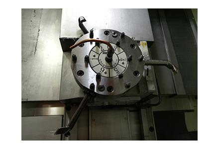 4采用液壓轉台實現B軸運(yùn)動,實現(xiàn)專用鵝頸刀具自動進刀,進行差速(sù)器殼內球麵(miàn)、內階麵的加(jiā)工